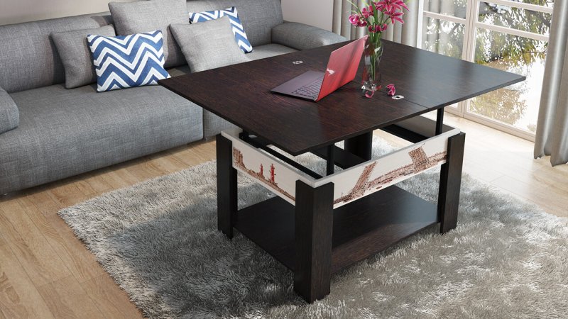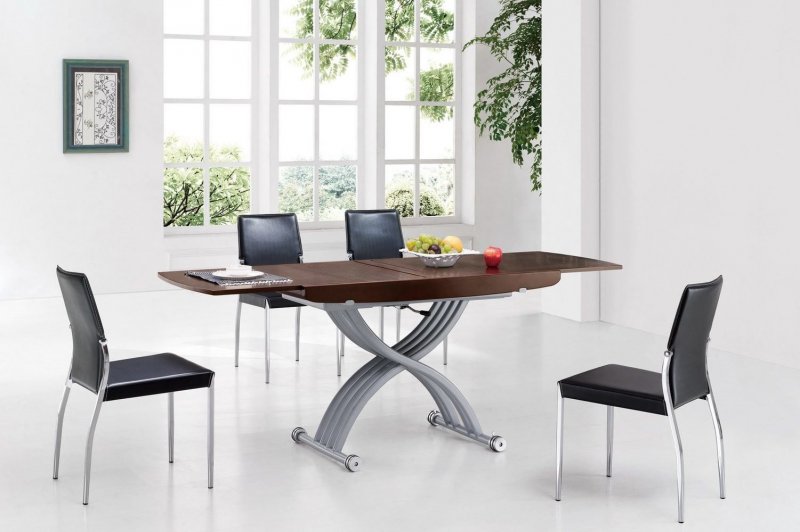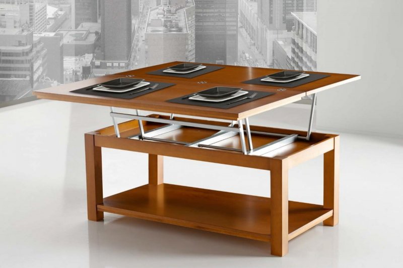 Невысокий журнальный столик отлично вписывается практически в любой интерьер. Он способен изменять свою высоту, легко превращаясь в обеденный для 4-10 человек. Такие предметы меблировки в широких пределах различаются по дизайну, форме, выполняются из дерева, стекла, металлов.