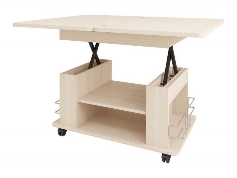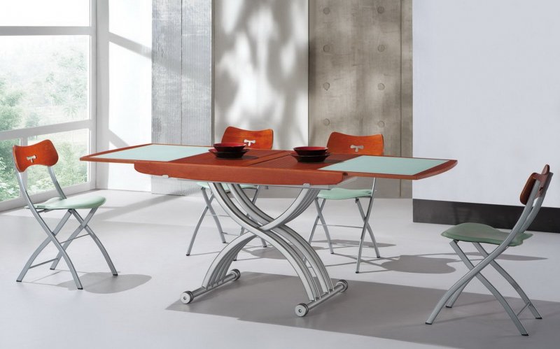 раскладной – его раскладывают, увеличивая не только размер поверхности, но и высоту. Такой стол легко преобразовывается в другой предмет;