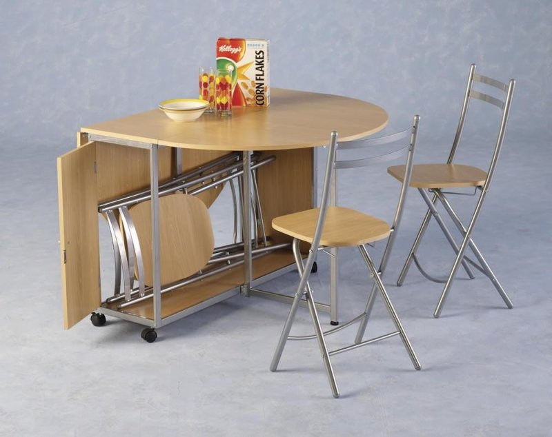 Мобильная обеденная зона для двух человек, в сложенном виде занимает пространство, сравнимое разве что с большой тумбочкой. Конструкция складывается как пазл, в разложенном виде образуя два удобных стула и маленький столик. Изделие часто используется в качестве садовой мебели, размещаемой на крытой веранде. Существуют также круглые модели, состоящие из стола и четырех-шести мягких кресел. В собранном виде изделие напоминает круглую тумбу.