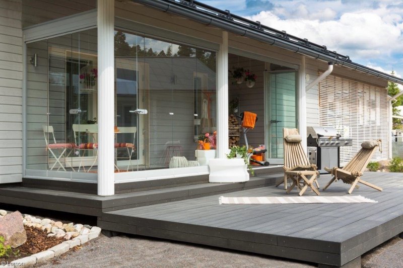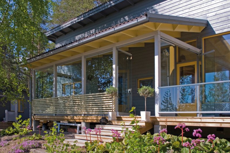 Остекление веранды в любом случае потребует достаточно больших денежных вложений. Это помещение станет отличной заменой беседке и позволит наслаждаться единением с природой в любую погоду. Согласитесь, что глупо проводить время за городом, при этом ограничивая себя четырьмя стенами. Если терраса рассчитана только на летний отдых, то стоит подумать о частичном остеклении или использовании дешевого поликарбоната в качестве альтернативы. Если домик очень маленький, то пристройка позволит добавить к его площади еще одну жилую комнату с неповторимым уютом и теплой обстановкой.