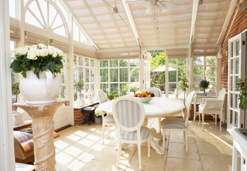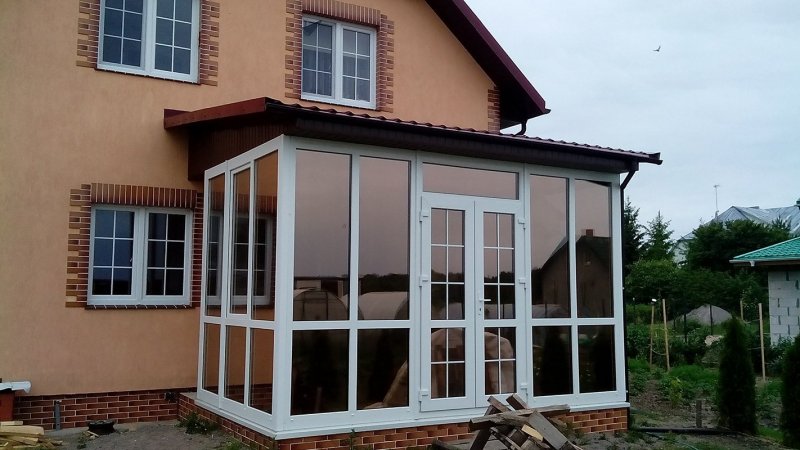 Холодное остекление выглядит стильно и практично. При этом стеклопакеты надежно защищают веранду от осадков, грязи и пыли. Летом помещение может использоваться в качестве рабочего кабинета, комнаты отдыха, летней кухни, а зимой его легко переоборудовать в кладовую, для хранения запасов солений или «даров огорода». Теплое остекление обычно осуществляется с помощью пластиковых стеклопакетов, которые имеют специальные воздушные камеры.