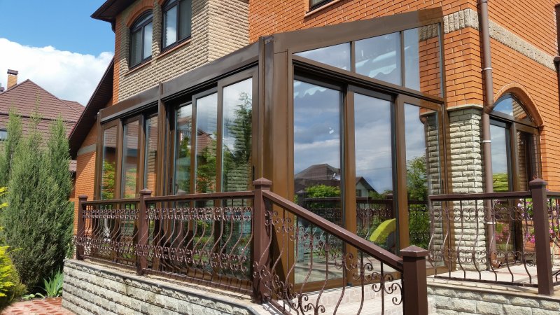 Веранда с алюминиевым профилем может использоваться только летом, зимой здесь логичнее всего обустроить «уличную морозилку». Хотя сейчас производители предлагают довольно дорогое решение этой проблемы — термовставки и специальные вкладыши, которые задерживают тепло и создают дополнительную шумоизоляцию. Алюминиевый профиль огнеупорен, поэтому риск воспламенения конструкции сводится к нулю, что становится еще одним преимуществом материала, если сравнивать с древесиной.