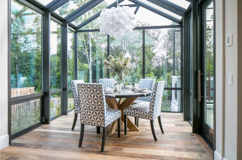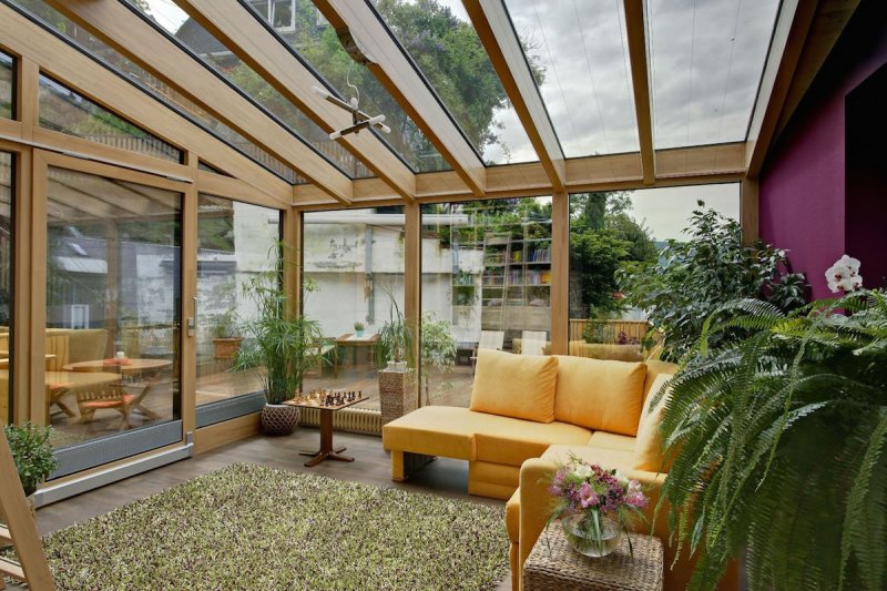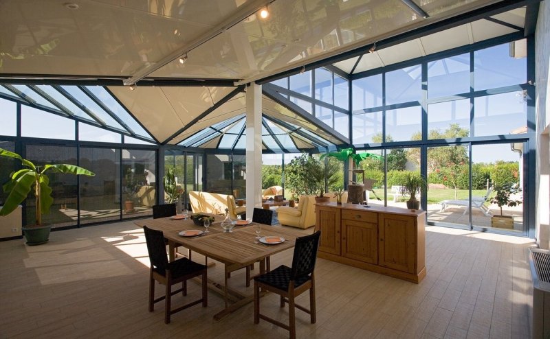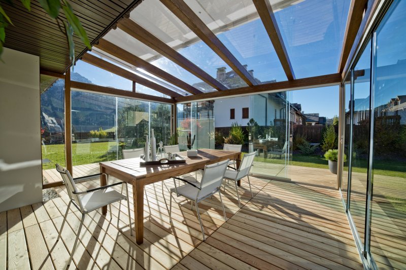 От этого уже можно отталкиваться при выборе типа конструкции и материалов. Для «зимних» веранд идеально подойдут прочные деревянные рамы или пластиковые стеклопакеты, закаленное стекло или триплекс. Для холодного остекления можно использовать алюминий, поликарбонат, мягкое стекло. Конечно, летняя веранда обойдется намного дешевле, но «теплая» предоставляет больше возможностей.