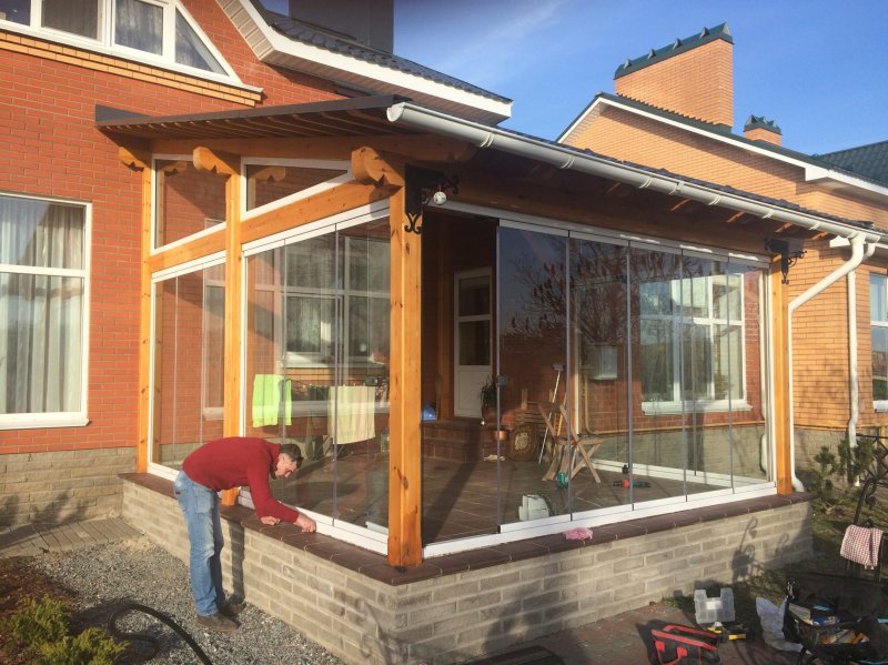 Застеклить веранду своими руками можно только в том случае, если планируется использование древесины в качестве рам. Предварительно нужно тщательно провести замеры и создать чертежи конструкции. Стекла вставляют в специальные пазы в брусе, которые заранее выпиливают. Каким бы хорошим мастером ни был хозяин, его работа все равно будет сильно уступать готовым стеклопакетам, которые производятся на фабриках и проходят строгий контроль качества.