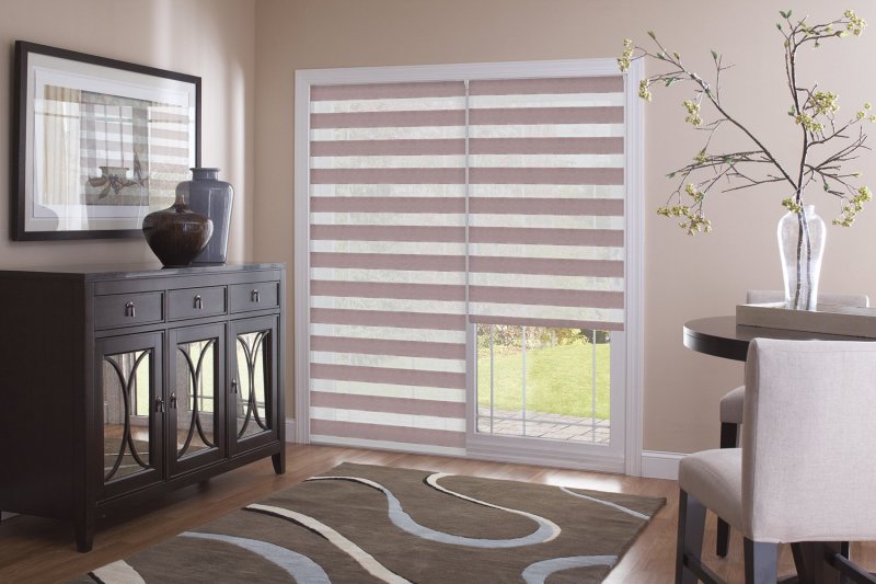 «День-ночь» (зебра). Очень популярный тип. Представляет собой двойное полотно, на котором чередуются цветные и прозрачные, сетчатые полосы. Такие занавесы способны полностью затемнить помещение, играть светом, создавать комфортную обстановку.