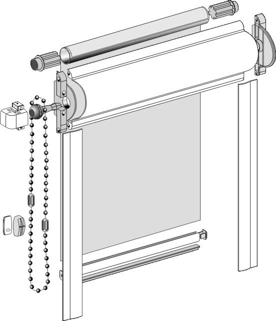 Цепочки. Стандартный способ управления валом. Наматывание и разматывание зависит от того, в какую сторону будет натягиваться цепь, оснащенная ограничителем.