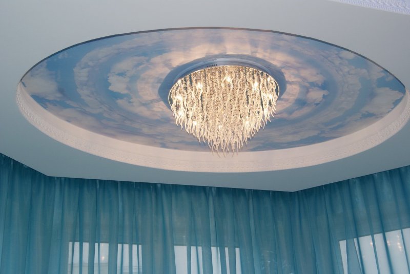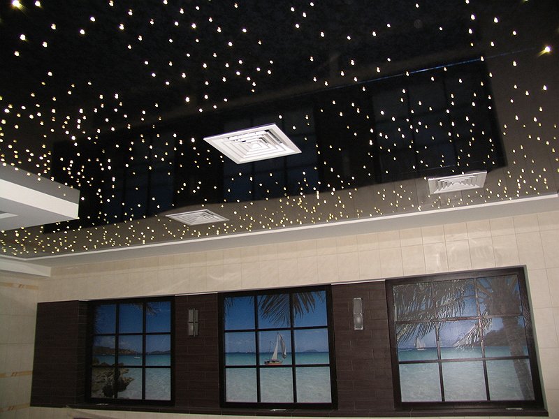 Звездное небо. Также не является полноценным источником освещения. Служит для декоративных целей. Суть заключается в том, что на полотно с помощью фотопечати нанесены звезды на ночном небе, а поверх покрытия расположены светодиоды или оптоволоконные нити.