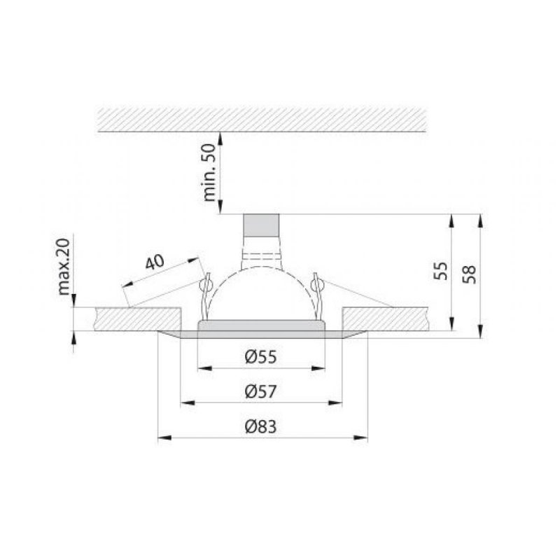 Нельзя превышать минимальное расстояние в 20 см между краем стены и монтированным светильником;