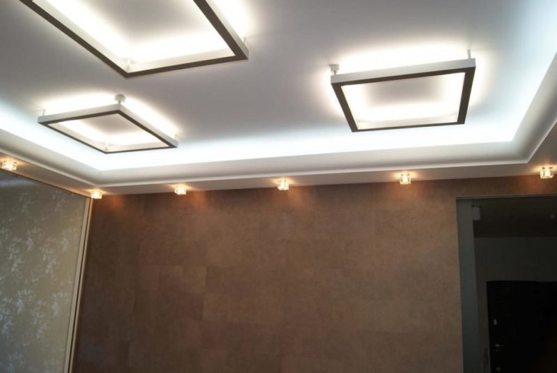 Один из самых популярных элементов для натяжных потолков. Светодиодные светильники способны эффективно осветить помещение любых размеров, одновременно создавая оригинальные декорации. Для них подходят точечные приборы, подвесные, встраиваемые люстры. Подсветка выпускается самого разнообразного дизайна и формы.