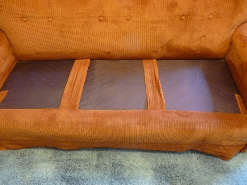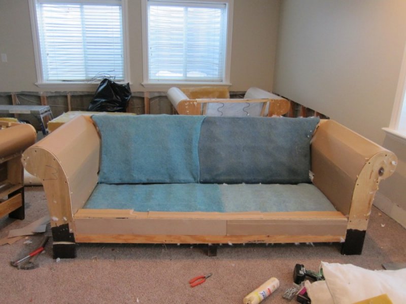 Многочисленные мастер-классы по замене текстильного верха дивана предполагают примерно одинаковую последовательность действий: