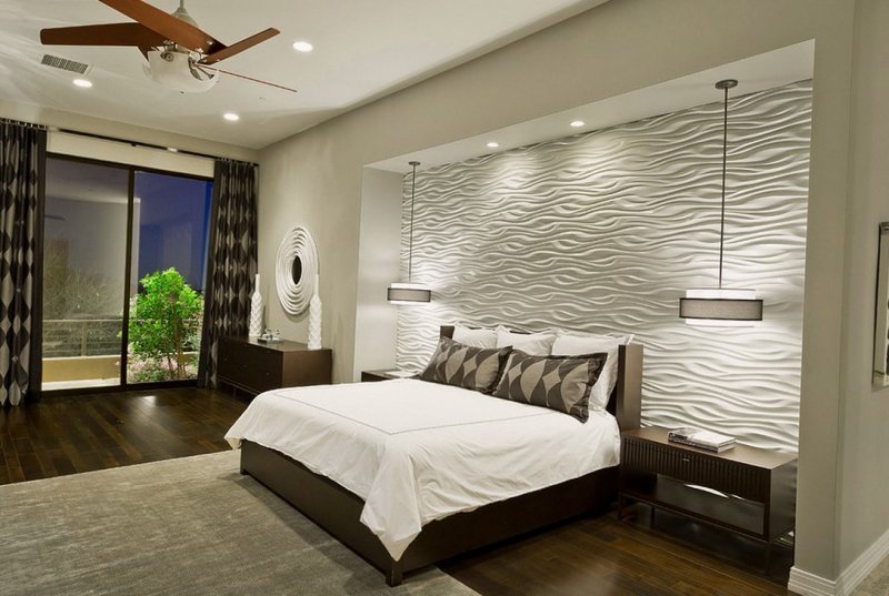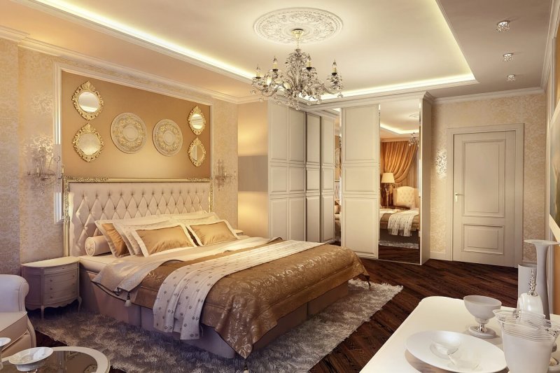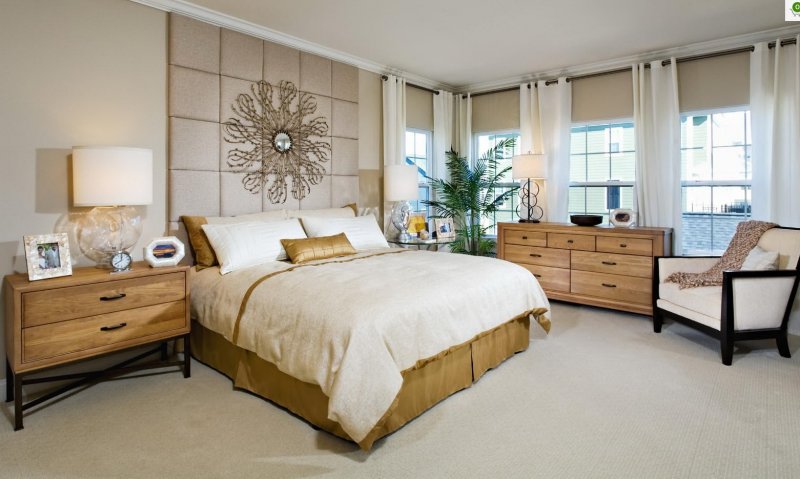Обустройство помещения начинается с установки кровати. Если комната большая (от 15 кв. м), проблем с выбором места не возникнет, подойдет практически любой уголок или стена. Правильное размещение в помещении меньшего размера позволит соблюсти гармонию с остальной мебелью, визуально увеличить пространство. Перед покупкой мебели меряют параметры, в том числе комнаты. Нужно учитывать, что минимальная дистанция для нормального прохода составляет 70 см. Будет кстати создать схему с планом комнаты. Пространство планируется с запасом, и в первую очередь речь идет о створках окна, распашной двери. В итоге чем меньше свободного места, тем больше кровать тяготеет к стенам. В просторной комнате большого объема или с небольшим количеством мебели дизайн формируется с центром в виде спального места. В таком случае планировка делается максимально симметрической. Также большие помещения позволяют размещать кровать согласно сторон света, как гласит китайская философия фен-шуй.