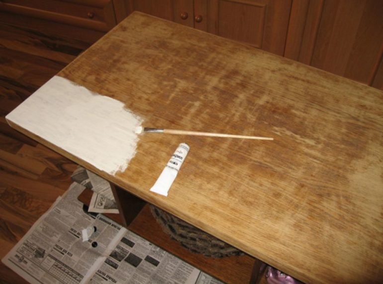 Так как полированное изделие лишено натуральной фактуры, то с помощью акриловой краски его необходимо полностью загрунтовать.