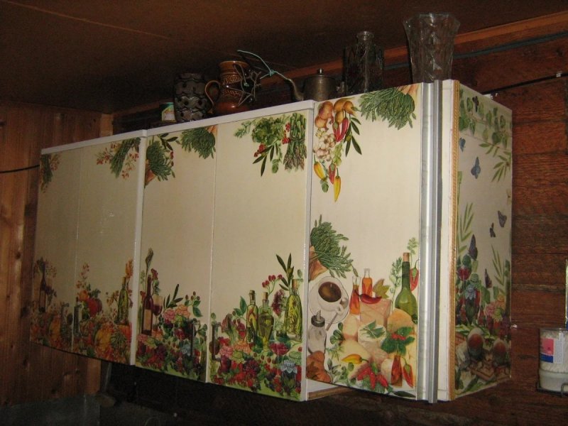 Сделать настоящий эксклюзив из типового кухонного гарнитура можно с помощью кусочков ненужных обоев. Выбираем тип декупажа, определяемся с обрабатываемой площадью. Необходимо ли сплошное покрытие или можно обойтись частичным нанесением элементов на фасады.