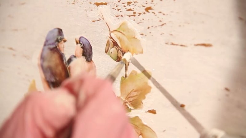 Оттенение. На поверхность предмета краски наносятся при помощи сухой кисти, что позволяет скрыть границы изображения.