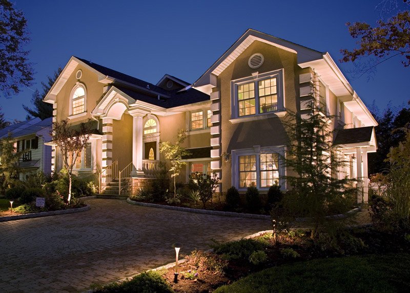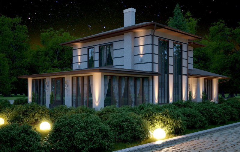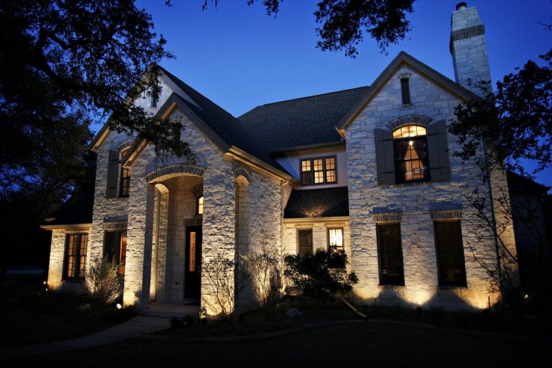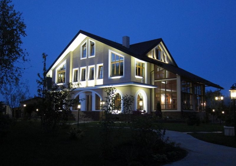 Одним из самых популярных вариантов наружного освещения частных домов является архитектурный. Он предполагает подсветку фасада строения. В зависимости от расположения и специфики освещения объекта выделяют следующие виды архитектурной подсветки: