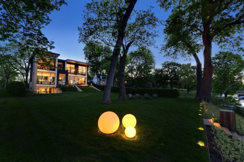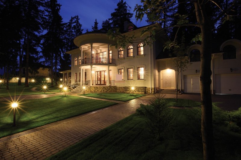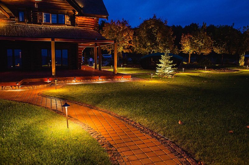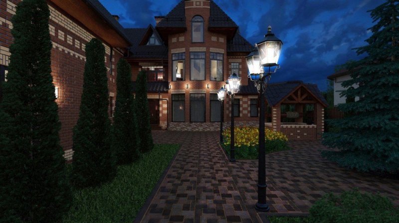 Небольшую придомовую зону не следует слишком «украшать» светильниками, иначе избыток света сильно испортит ландшафтный дизайн. На просторных территориях можно использовать большее количество светильников.