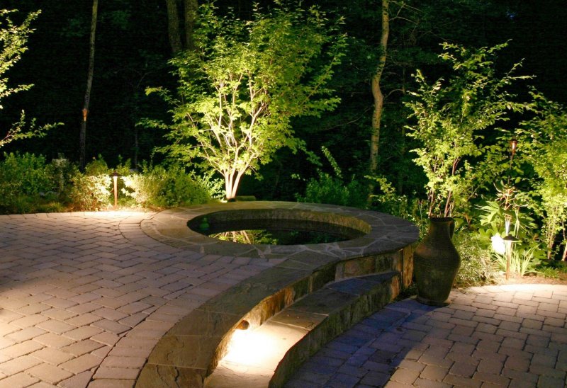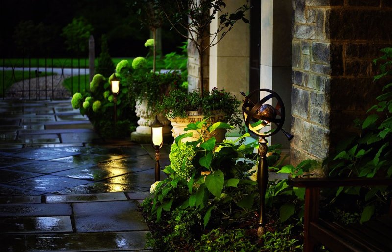 Они должны устанавливаться под растением, свет при этом направляется на объект. Подобная подсветка придомового участка создает особый комфорт передвижения и гармоничность общего вида территории. Для организации подсветки потребуется тщательное проектирование с учетом ландшафта, удаленности объектов друг от друга.