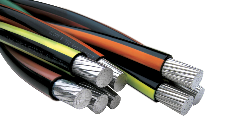 При возможности осуществить прокладку кабеля для уличного освещения воздушным способом (при незначительной удаленности объекта от электрощита), нужно использовать провода марок СИП-2, СИП-4, АВТ, ВВГ-ХЛ. Монтаж осуществляется вместе с тросом: такая мера защиты предупредит растягивание и обрыв кабеля.