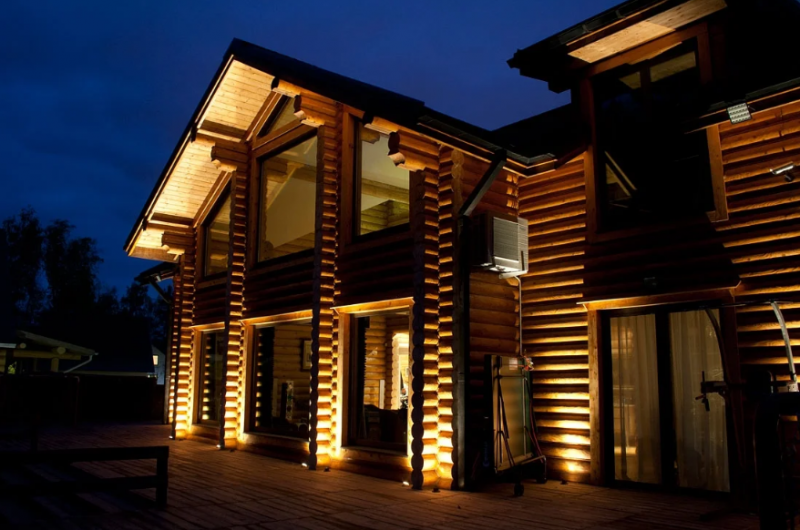 Очень важно, чтобы созданная снаружи подсветка хорошо смотрелась из коттеджа, красиво выделяя объекты и позволяя их хорошо просматривать.