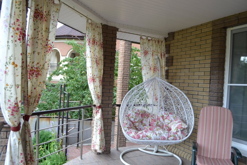 При выборе штор необходимо обратить внимание на совместимость их расцветки с другими предметами, расположенными внутри рассматриваемого помещения, чтобы они не противоречили общему оформлению. Например, если на веранде расположены диван и стулья с обивкой синего цвета, то в сочетании с этими предметами отлично будет смотреться тканевая занавеска с оттенком, который находится в этом диапазоне.