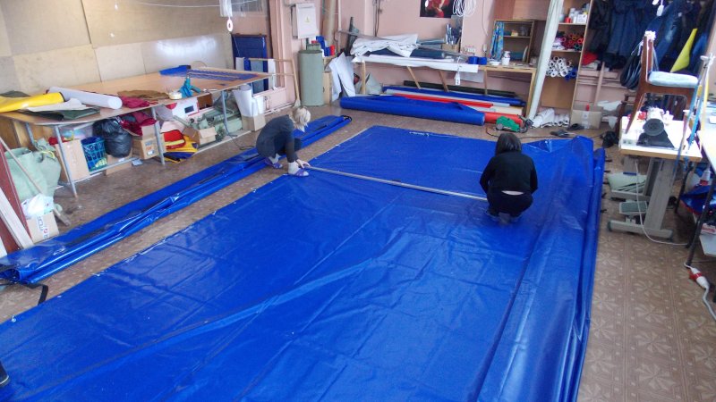 Тканевые, брезентовые, поливинилхлоридные занавесы можно закрепить на направляющих с роликом либо воспользоваться тросом с карабином. Также по всему периметру сооружения можно расположить поворотные скобы.
