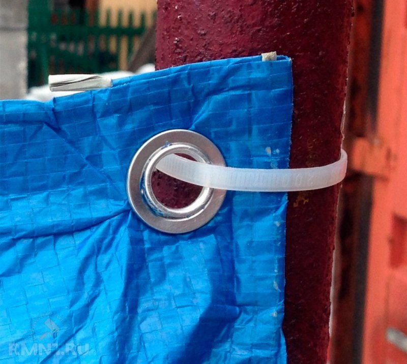ПВХ конструкции оконного типа крепятся при помощи специальных деталей (скоб, люверса с ремешком).