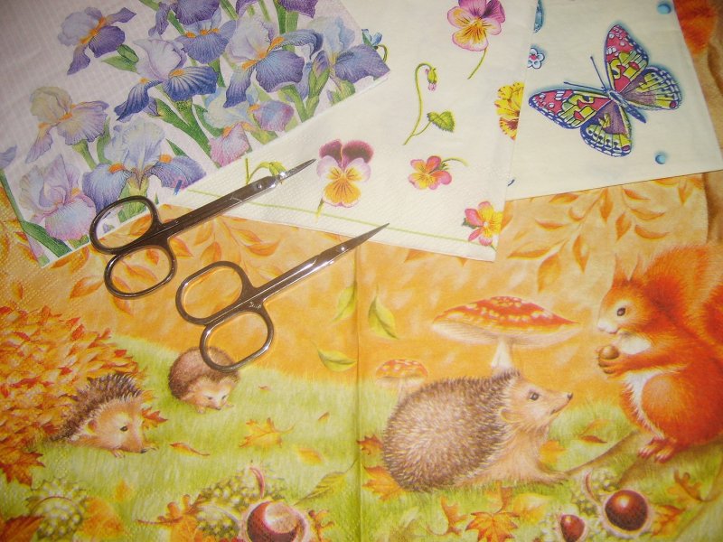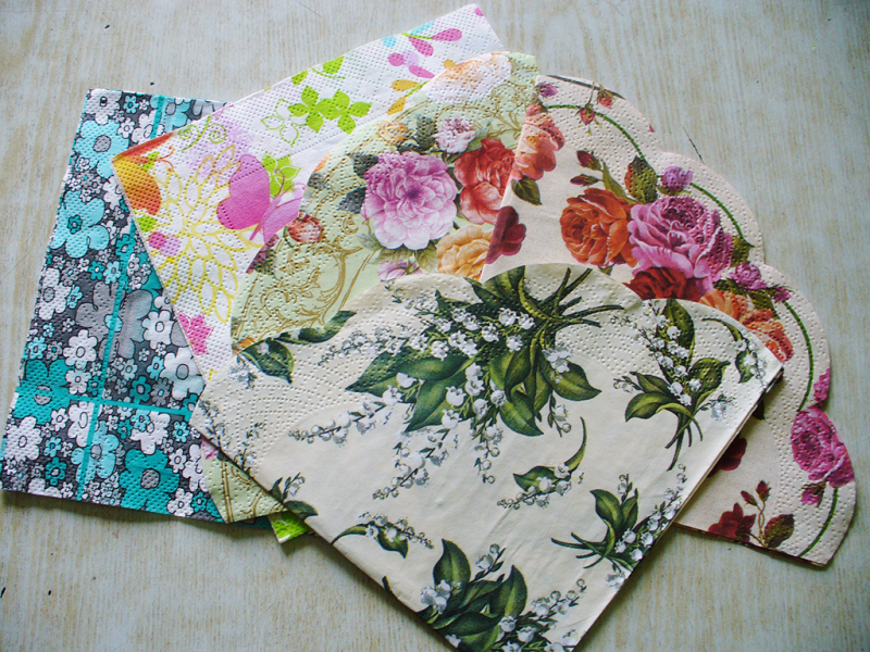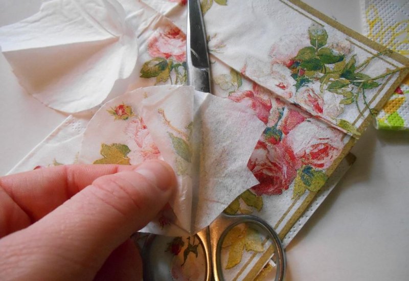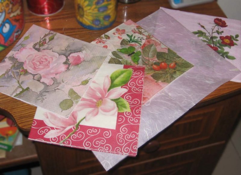 Для нанесения изображения используют разные материалы. Чаще всего трёхслойные салфетки, но на этом список не ограничивается. В этой технике можно найти применение различных бумажных изделий: