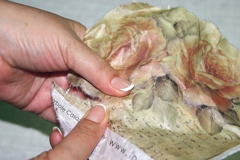 Рисовая бумага. Это очень тонкий, рыхлый материал, произведённый из рисовой соломы. По прочности не уступает картам. Подойдёт для украшения любого предмета.
