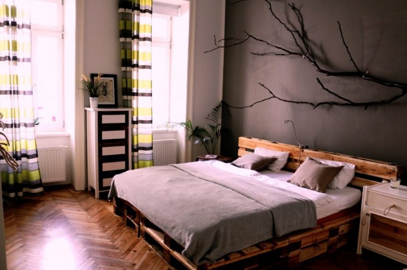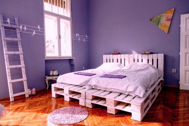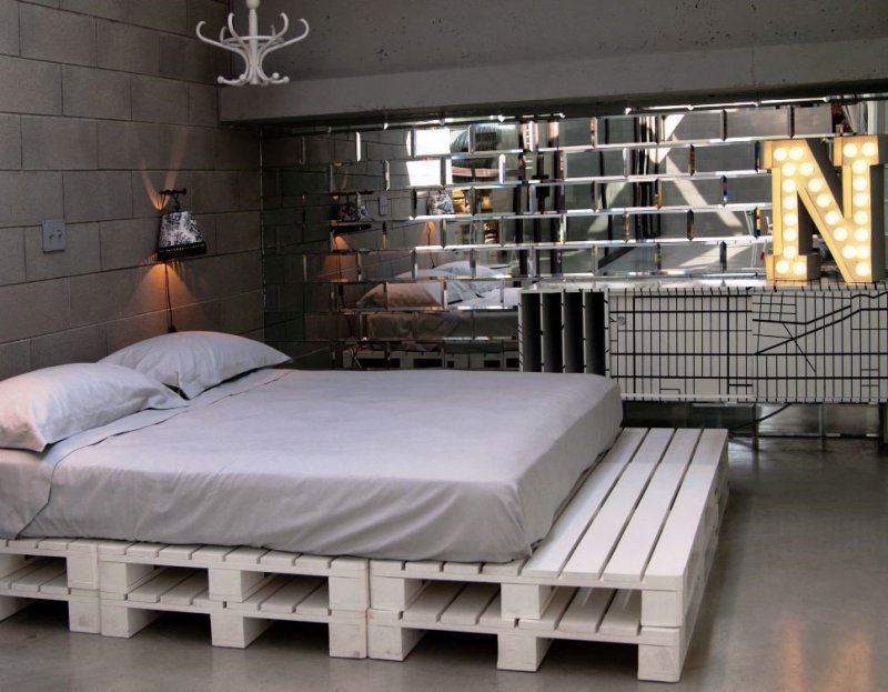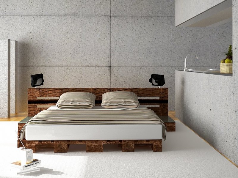 Поддоны делают из натурального дерева, чтобы собрать из них в домашних условиях какую-либо мебель, понадобятся лишь самые простые инструменты. Основание односпальной кровати изготавливается из трех-шести европоддонов, изголовье – из одного, реже – двух. Для двуспальной кровати-подиума из паллет, потребуется 15-18 элементов, детскую легко сделать из двух-трех.