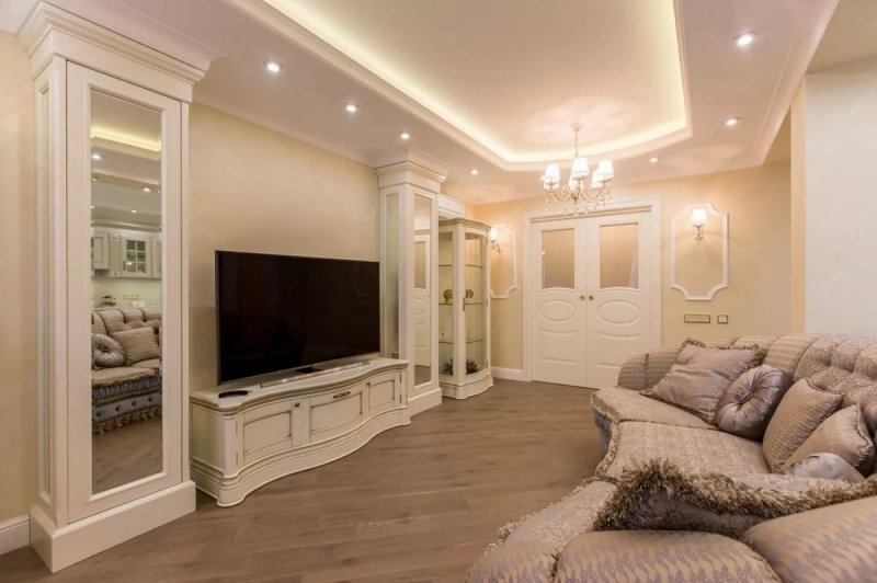 Площадь. В доме каждая комната имеет разную площадь. От ее величины зависит количество необходимого для работы материала, соответственно его стоимость. В больших помещениях, таких как зал, будут органично смотреться многоуровневые гипсокартонные конструкции, разделяющие пространство на части. В тесной комнате можно использовать любую облицовку, а для улучшения визуального эффекта организовать скрытую светодиодную подсветку.
