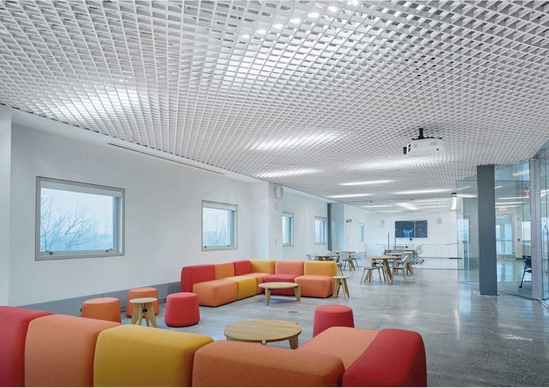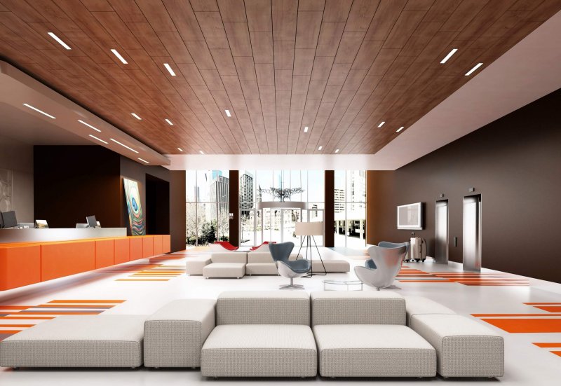 Этот вид отделки часто устанавливается в торговых, бизнес-центрах, автосалонах, гостиницах. Продукция включает в себя профили «мама», «папа», крепежные материалы, регулируемый подвес, алюминиевые ленты. Покрытие маскирует пространство, расположенное за ним, обеспечивает хорошую вентиляцию.