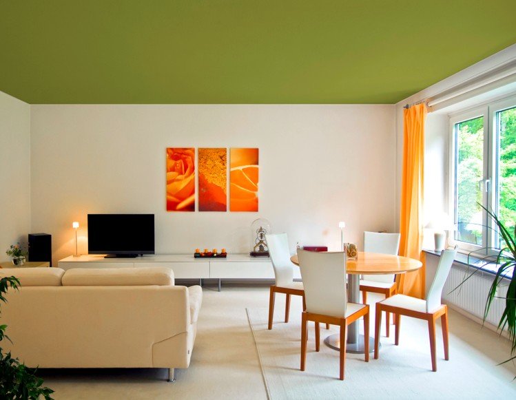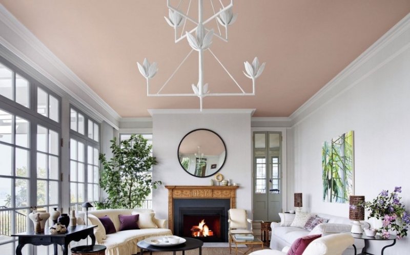 Цвет потолка должен гармонировать с расположенными в помещении предметами или соответствовать тону стен.
