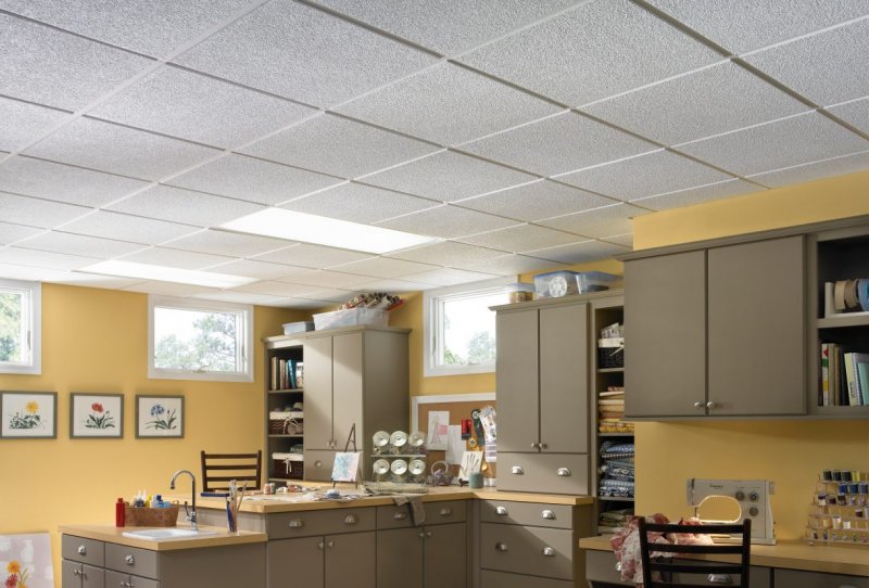 Готовая продукция представлена профильной системой и декоративными модулями. Такая конструкция характерна для офисов, общественных заведений, но иногда встречается в жилых сооружениях. Существует много видов панелей, среди которых можно выделить гипсокартонные, минеральные, ДСП, деревянные, металлические, зеркальные модели.