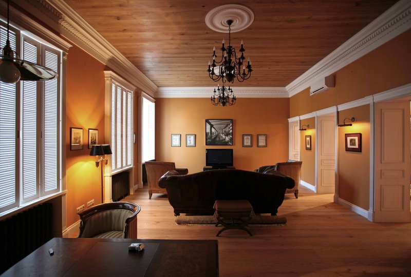 Классика и неоклассика. Классические интерьеры включают в себя большое количество архитектурного декора: фрески, карнизы, русты, барельефы, другие элементы. Для оформления используют гипс, пенопластовые плиты. Характерны белые, молочные оттенки, цвет слоновой кости, морозного инея. Для мансарды подойдет гипсокартон, отшлифованная доска.