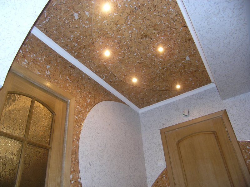 Натяжного полотна. Очень красивое и дорогое оформление. Самостоятельная установка затруднительна, потребуется специальное оборудование. Есть тканевые и пленочные модели.