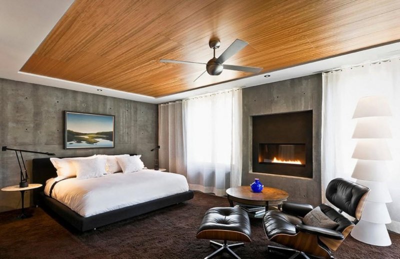 Открытая необработанная плита станет незаменимой для стиля лофт, любители которого сделали из бетона целый культ. В сочетании с деревянным полом помещение будет смотреться очень стильно. Наряду с балочным и плиточным перекрытием, бетонный потолок может быть облицован разными материалами. Он станет хорошей базой для побелки, обоев, плитки, других покрытий. Отдельно стоит обратить внимание на конструкции, закрепленные к потолочному основанию на подвесах.