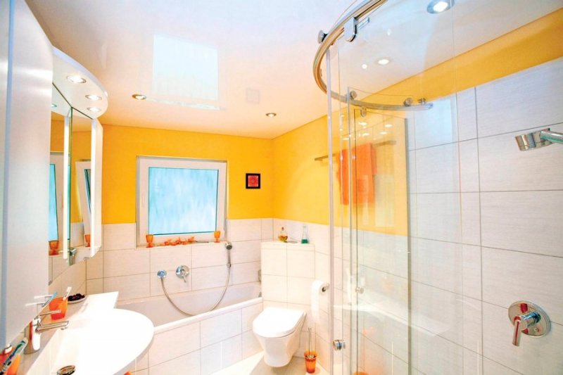 Ванная или совмещенный санузел. Здесь берется в расчет постоянная влажность, испарение, прямое попадание жидкости на потолочную поверхность. Также есть большая вероятность затопления соседями, проживающими сверху. Не стоит забывать о постоянных изменениях температуры, это обстоятельство оказывает негативное воздействие на многие стройматериалы.