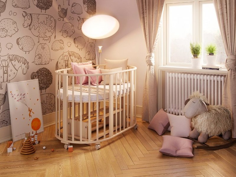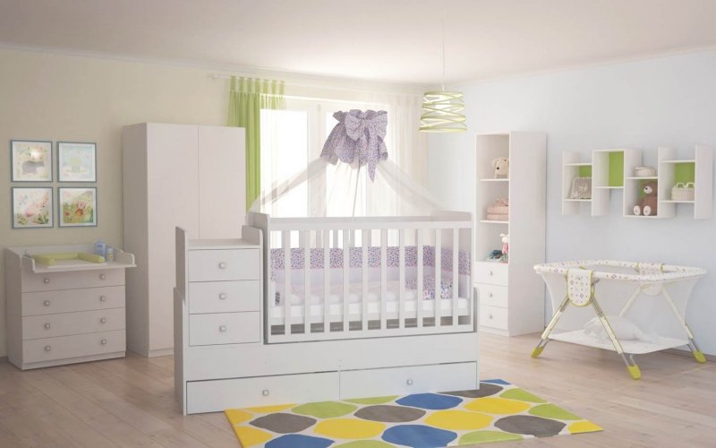 Трансформируемые модели имеют съемный бортик, полозья, которые легко снять, когда они больше не нужны, снизу оборудуются ящиками для хранения постельного белья, игрушек. Практичный трансформер для старших детей, из кроватки превращается в диван, его примерные размеры — 1400х600 мм или 1700х700 мм. Сюда часто пристраивается комод для хранения бельевых принадлежностей, пеленальный столик. Когда малыш подрос, столик с комодом демонтируется, сама конструкция успешно используется почти до окончания средней школы. Единственный минус трансформера – его относительно большие габариты.