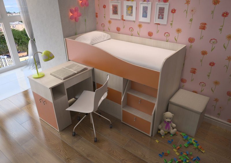 Уникальные конструкции, служащие спальным местом, так и пространством для сюжетных игр, выполняются самостоятельно либо под заказ. Это может быть замок принцессы или пиратский корабль, гоночная машинка или карета, космический звездолет или роскошный шатер. При желании сюда монтируются лесенки, горки, качели.
