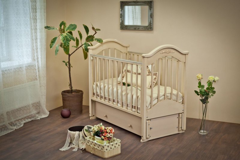 Расстояние между прутиками кроватки для младенца делается не более шести см. Бортики делаются съемными, стационарными. Ложе должно быть достаточно устойчивым – чем уже, выше модель, тем больше вероятности опрокинуть ее. Любые острые углы, различный травмоопасный декор запрещается.