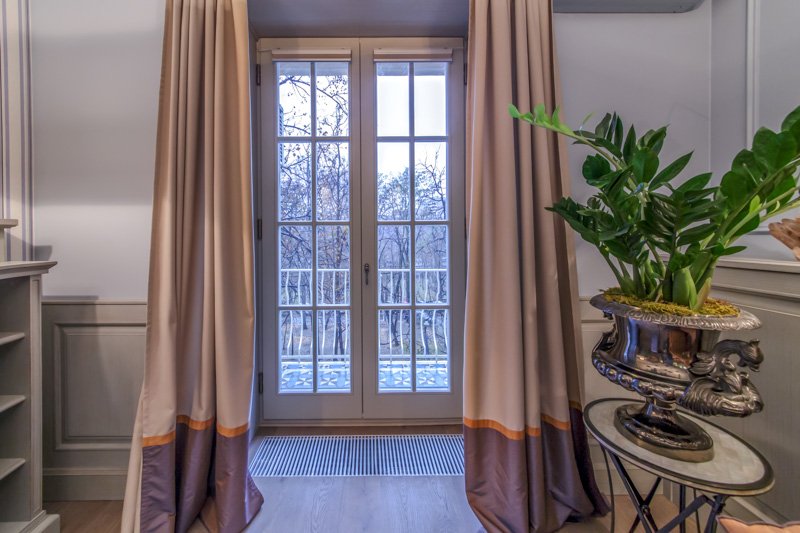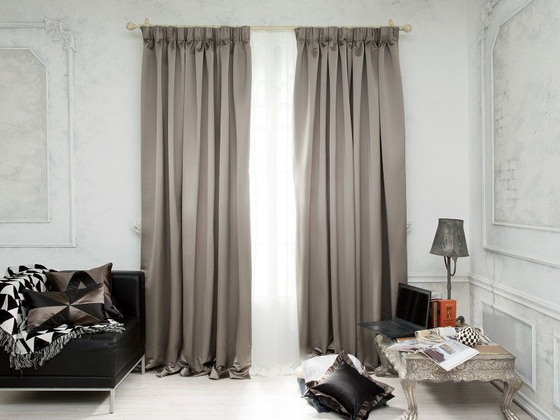 Максимально длинные шторы, которые достигают напольного покрытия или ниспадают на него — отличный вариант для жилых комнат. Они подчеркивают индивидуальность вкуса хозяев, способствуют необычной стилизации помещения. Одним из важнейших преимуществ таких моделей является визуальное увеличение высоты стен. Кроме того, при подборе ткани, отличающейся по цвету от отделки, можно добиться визуального разделения комнаты на несколько зон и красиво выделить окно. К минусам шторок в пол относится быстрое загрязнение нижней части полотна. Поэтому уборку в комнатах, где будут вешаться такие портьеры, нужно проводить ежедневно. В противном случае поддерживать привлекательность текстиля просто не получится. Идеальными для подобной подачи считаются следующие фасоны: итальянский и классический.