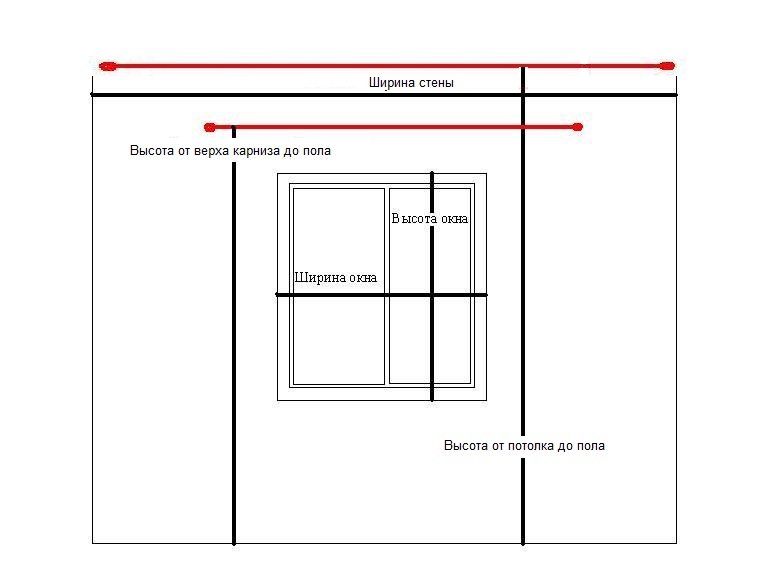 Верное проведение замеров оконного проема, а также карниза, к которому будут крепиться шторы, поможет правильно рассчитать нужный метраж готового изделия и не ошибиться при покупке ткани. Итак, проводить замеры ширины нужно следующим образом: