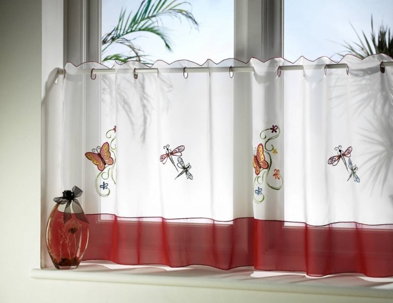 К моделям до подоконника можно также отнести и изделия с длиной до середины окна. Последние обычно имеют вид арки, позволяют скрыть лишь верхнюю часть оконного проема. Их преимущество заключается в защите комнаты от солнечного света в дневное время, не препятствующей отличному доступу естественного света в комнату. Шторы до подоконника имеют длину, позволяющую полностью закрывать стекло и раму (возможно, и стены возле оконного проема). Но при этом они не ложатся на сам подоконник. Такой вариант имеет множество плюсов. За короткими шторками легче ухаживать (они просто снимаются и чистятся независимо от фасона), они ненавязчиво дополняют общий вид помещения. Также не препятствуют простому доступу к растениям или другим объектам, расположенным на подоконнике. Могут крепиться к потолку или стене, фиксироваться над оконным проемом, крепиться в самом проеме или на раме.