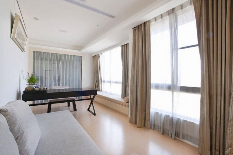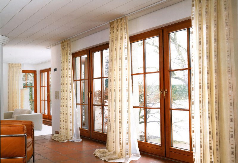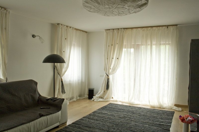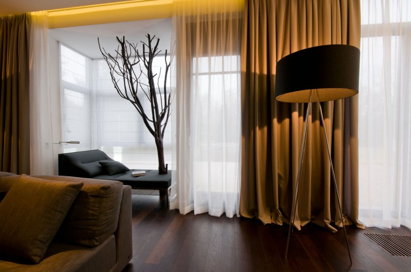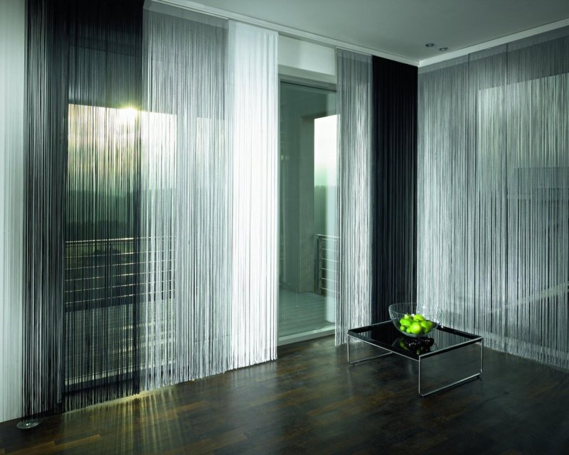 Под шторами, имеющими длину до пола, подразумевают полотна, которые располагаются на расстоянии 5-10 см над полом. Они будут достаточно длинными для визуального увеличения высоты стены, но при этом не станут собирать пыль и мусор внизу. Хорошо для подобного размещения подходят классические изделия, а также итальянские и японские модели. Необычно будут смотреться нити до пола, располагаемые в спальной комнате взрослых или подростка. Такие нити подчеркнут оригинальность стилизации и привнесут в интерьер динамичности. В просторных помещениях с небольшими подоконниками (чтобы ткань в этой области не топорщилась) допускается размещение длинных французских шторок. Они придадут общему виду комнаты особый шарм и элегантность.