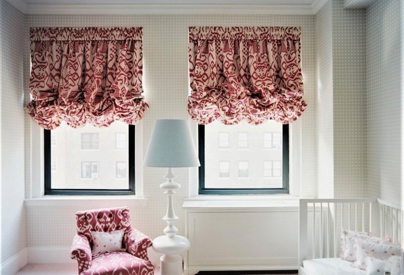 В детской комнате уместными будут шторы до подоконника и чуть ниже подоконника. Длинные полотна нельзя считать подходящим вариантом: если ребенок будет играть возле окна, он может случайно зацепить изделие и в худшем случае сорвать портьеру с карниза. В детских комнатах рекомендуется вешать комбинированные изделия: портьеры с тюлем. Они обеспечат хорошую защиту помещения от яркого солнца в дневное время (даже если ребенок уже не спит днем), предупредят проникновение света от фонарей, луны в комнату ночью. Оптимальными вариантами можно считать рулонные, французские, австрийские модели. Стильно дополнить комнату малыша смогут и римские шторы или плиссе. Правда, чистку многослойных полотен лучше проводить каждый день или через день. Это позволит поддерживать здоровую атмосферу в помещении и исключит скопление пыли в складках ткани.