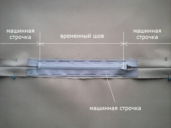 Соединяем самую большую деталь с боковушками, сшиваем, оставляем место для молнии с одной из сторон;