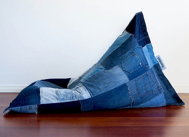 Накопившиеся джинсы, вышедшие из моды или просто пришедшие в негодность, станут отличным материалом для пошива удобного прямоугольного кресла, как в следующем пошаговом мастер-классе. Для одного удобного диванчика понадобится 6-7 джинсовых брюк, наполнитель, принадлежности для раскроя и шитья.