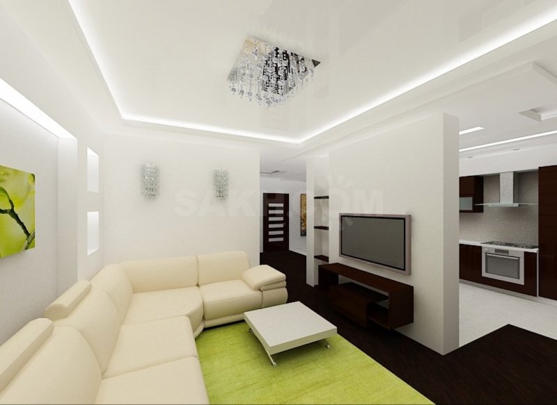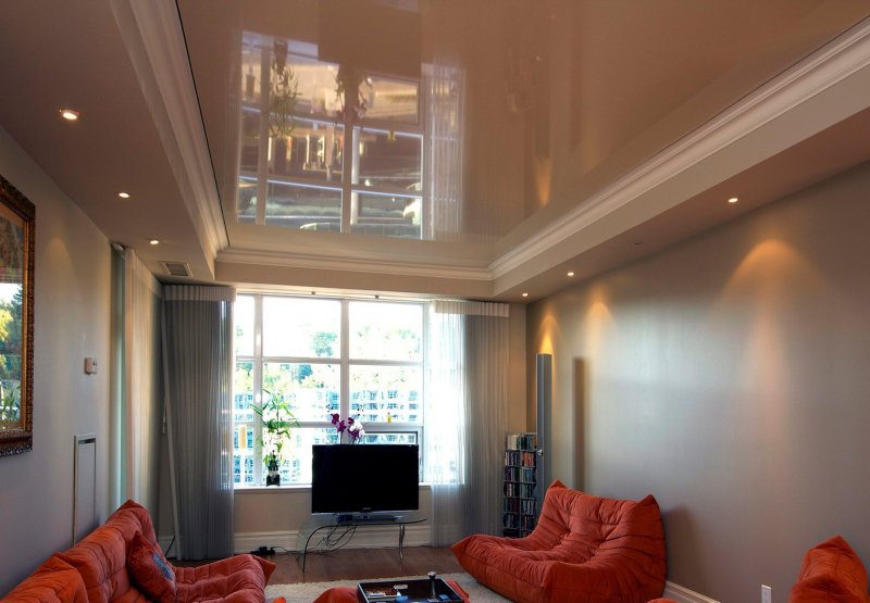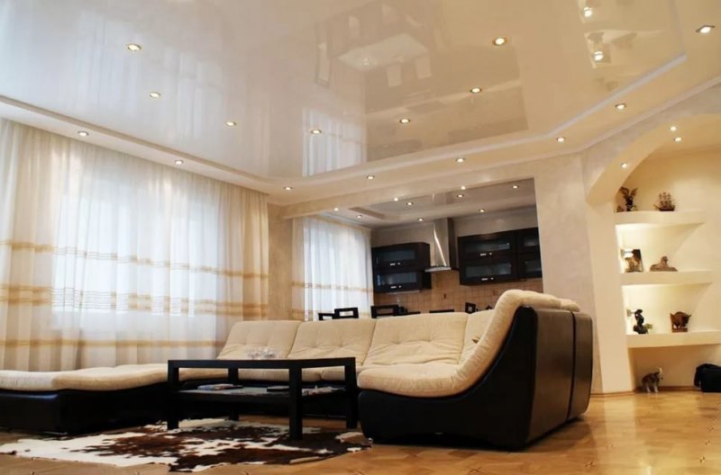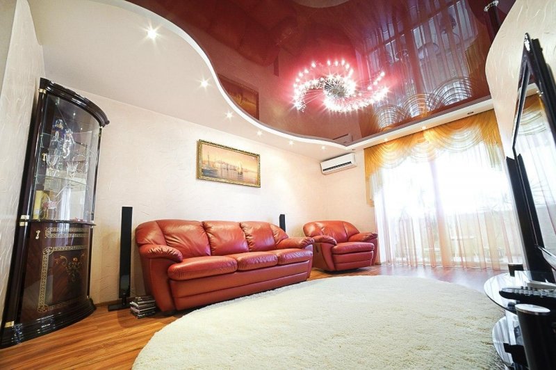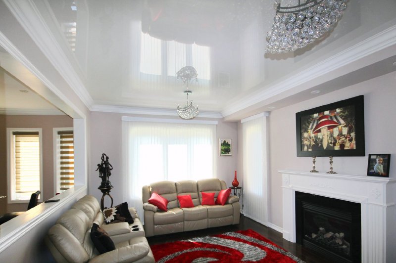 В зависимости от выбранной конфигурации, двухуровневые конструкции могут визуально приподнять или опустить потолок. Но для слишком низких перекрытий все же стоит отказаться от выбора такой отделки.