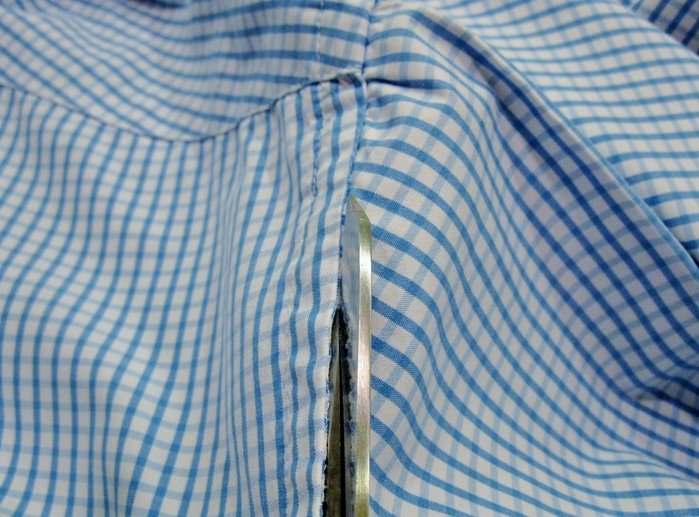 Подготавливаем спинку, отрезаем воротник, рукава;