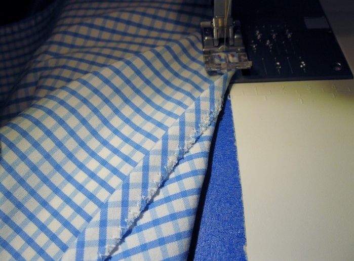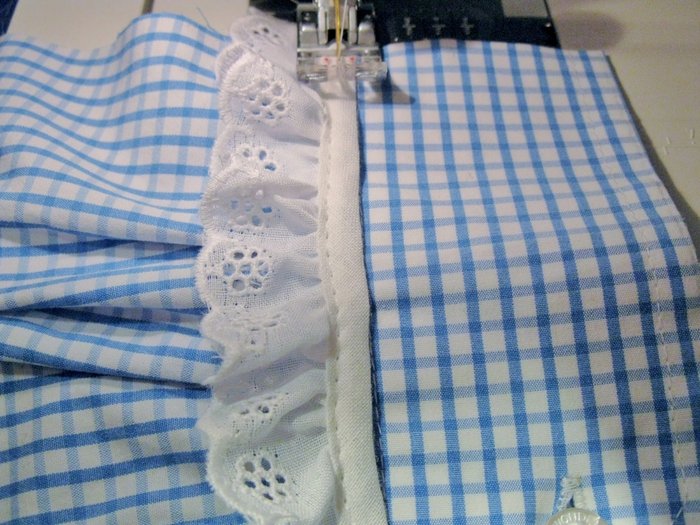 Подшиваем свободные края нижней части фартука;